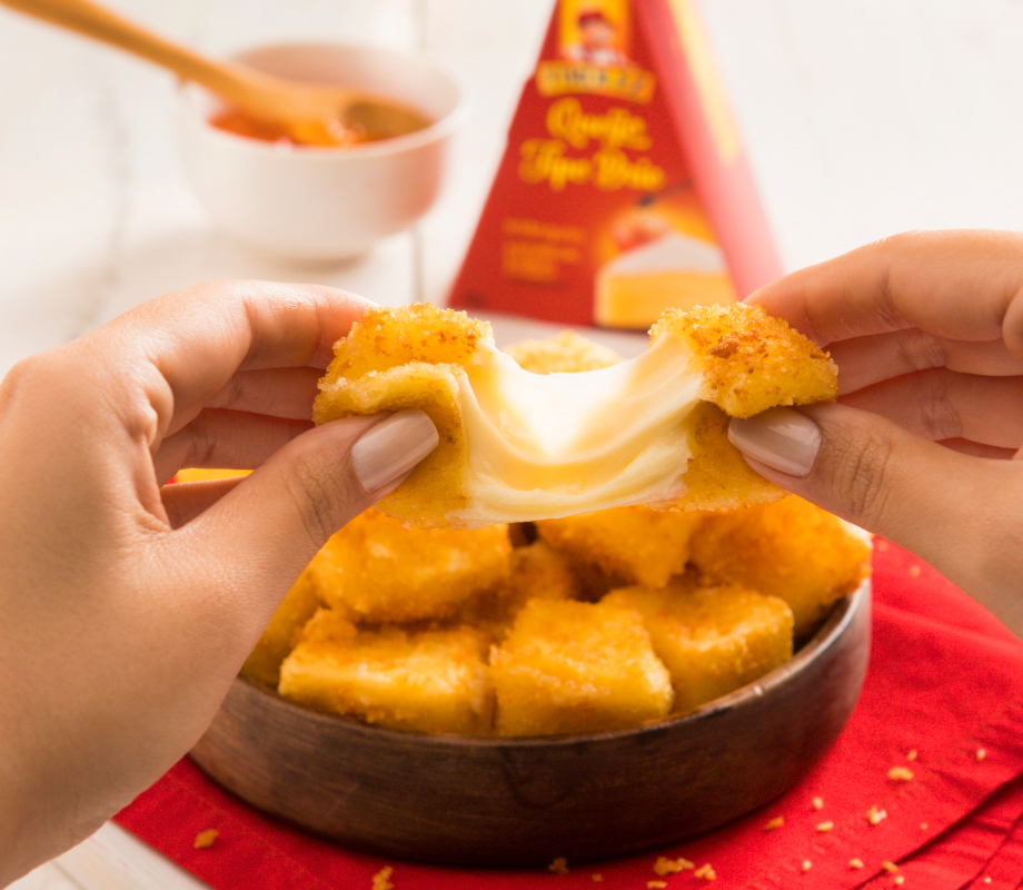 É um queijo de origem italiana, com consistência firme, sabor intenso e textura granular. O Queijo Parmesão Tirolez puro é ideal para acompanhar vinhos encorpados e até mesmo cerveja em dias mais quentes. Quando ralado, realça o sabor de molhos, o que se torna uma opção perfeita para gratinar massas e outros pratos, além de deixar sua tábua de queijos especialmente saborosa. É uma delícia!